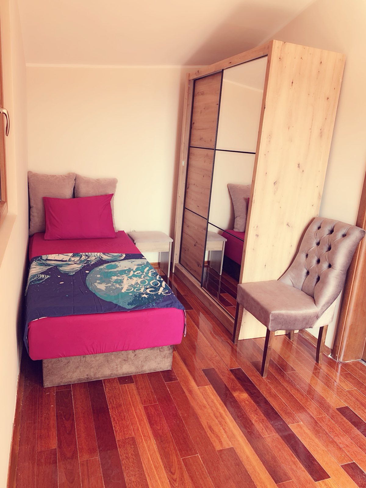 Izdaje se na godišnjem nivou dvosoban stan u Bečićima ,Ivanovići.Stan je površine 80m2 i nalazi se na trećem spratu stambene zgrade bez lifta.Poseduje sve neophodno za život kao i dvorište sa prakingom za auto.Cena 700€ + računi.Uslovi plaćanja dogovor.