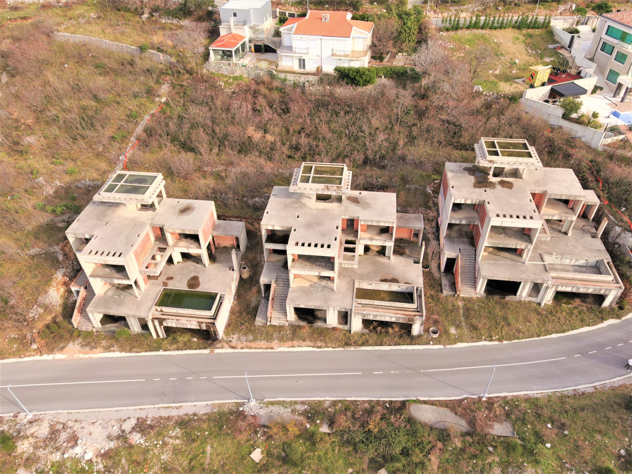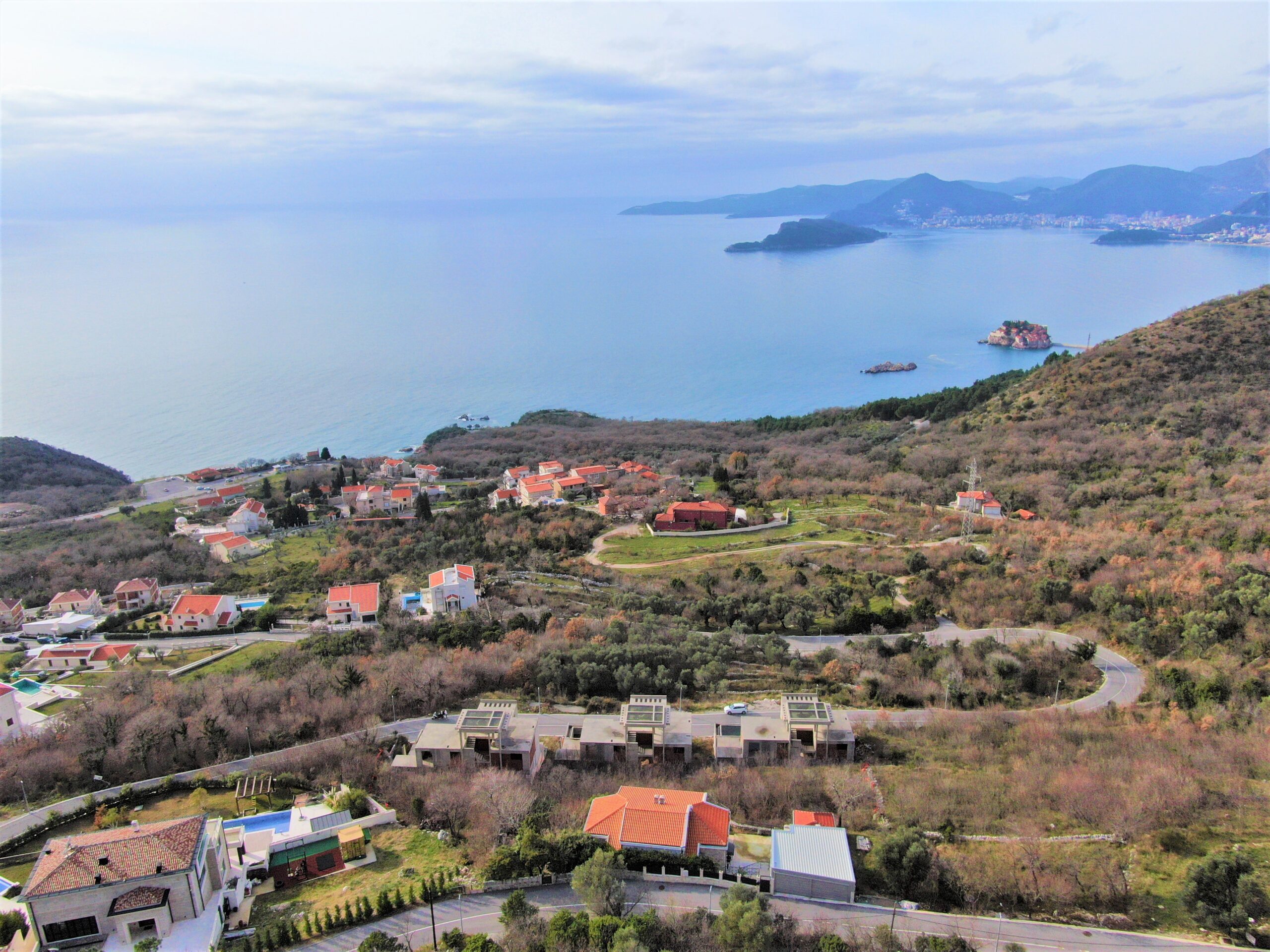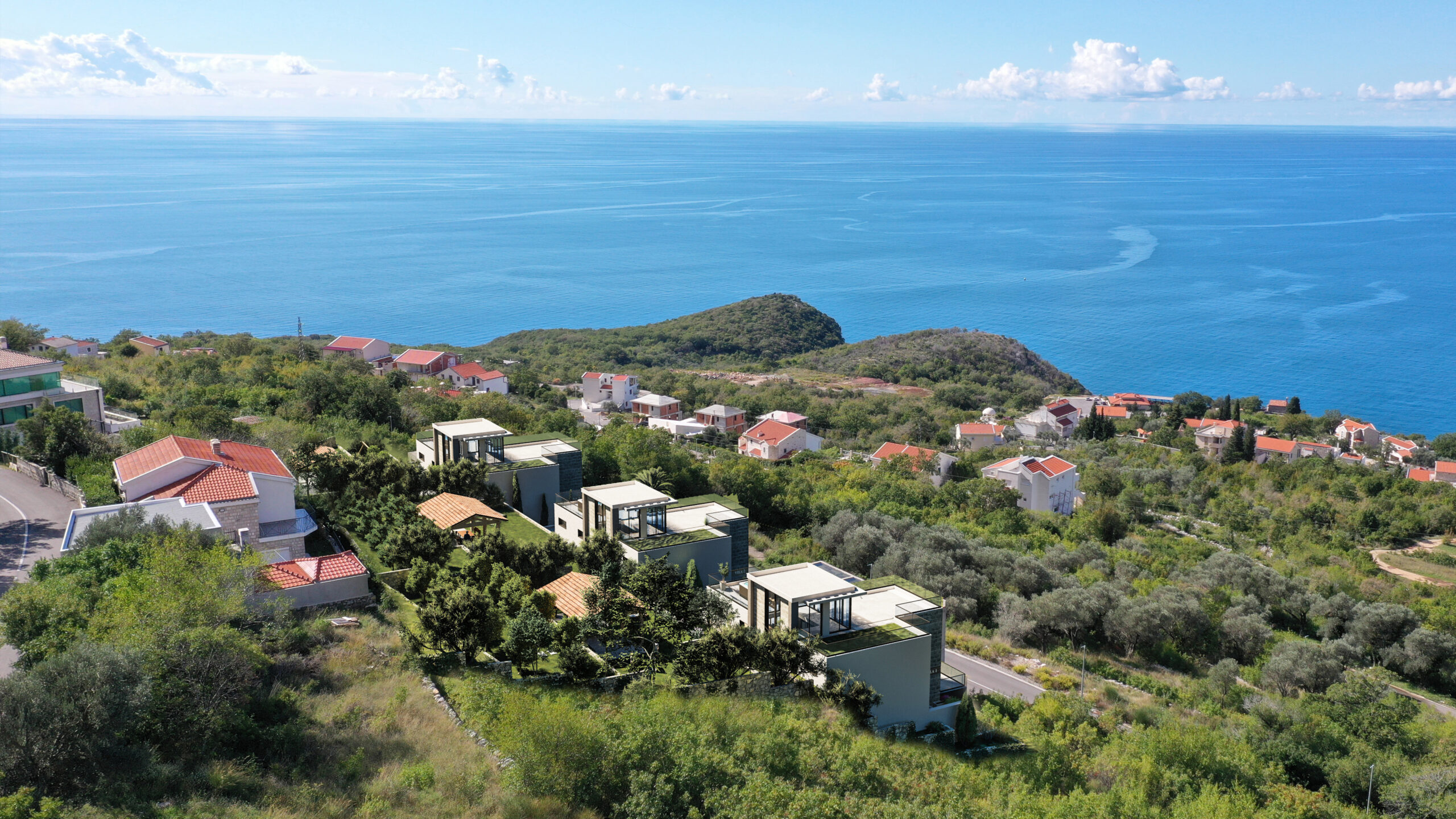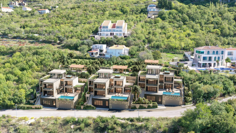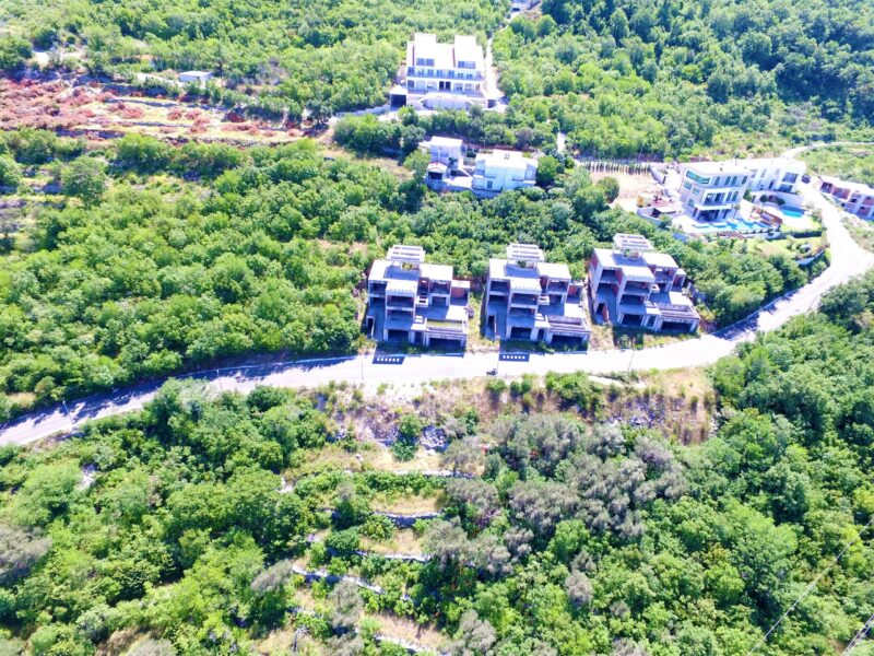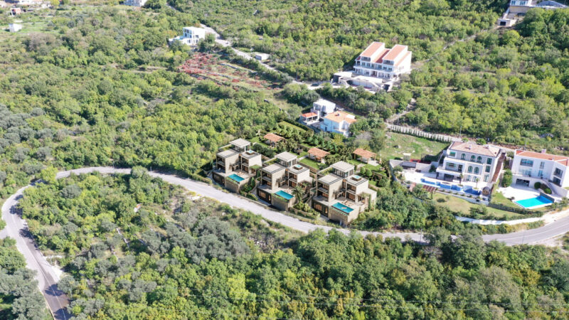 U sve popularnijem naselju Tudorovići, na prirodnom uzvišenju iznad Budve koje garantuje neometan panoramski pogled na more i okruženje, na prodaju kompleks od tri identične luksuzne vile.