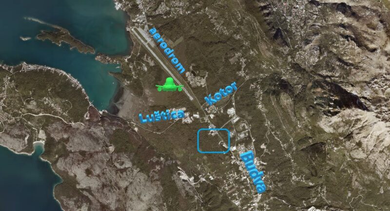 – Blizina tivatskog aerodroma, Porto Montenegra, Kotora, Luštica Bay-a i neposredna blizina jadranske magistrale