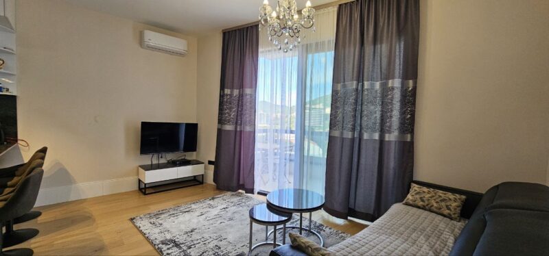 Izdaje se na godišnjem nivou dvosoban stan u Bečićima,opština Budva u kompleksu Cassa Al Mare.Površina stana iznosi 53m2 i nalazi se na petom spratu stambene zgrade sa liftom.Cena 1000€ mesec+računi.Uslovi plaćanja dogovor.Parking mesto uračunato u cenu.