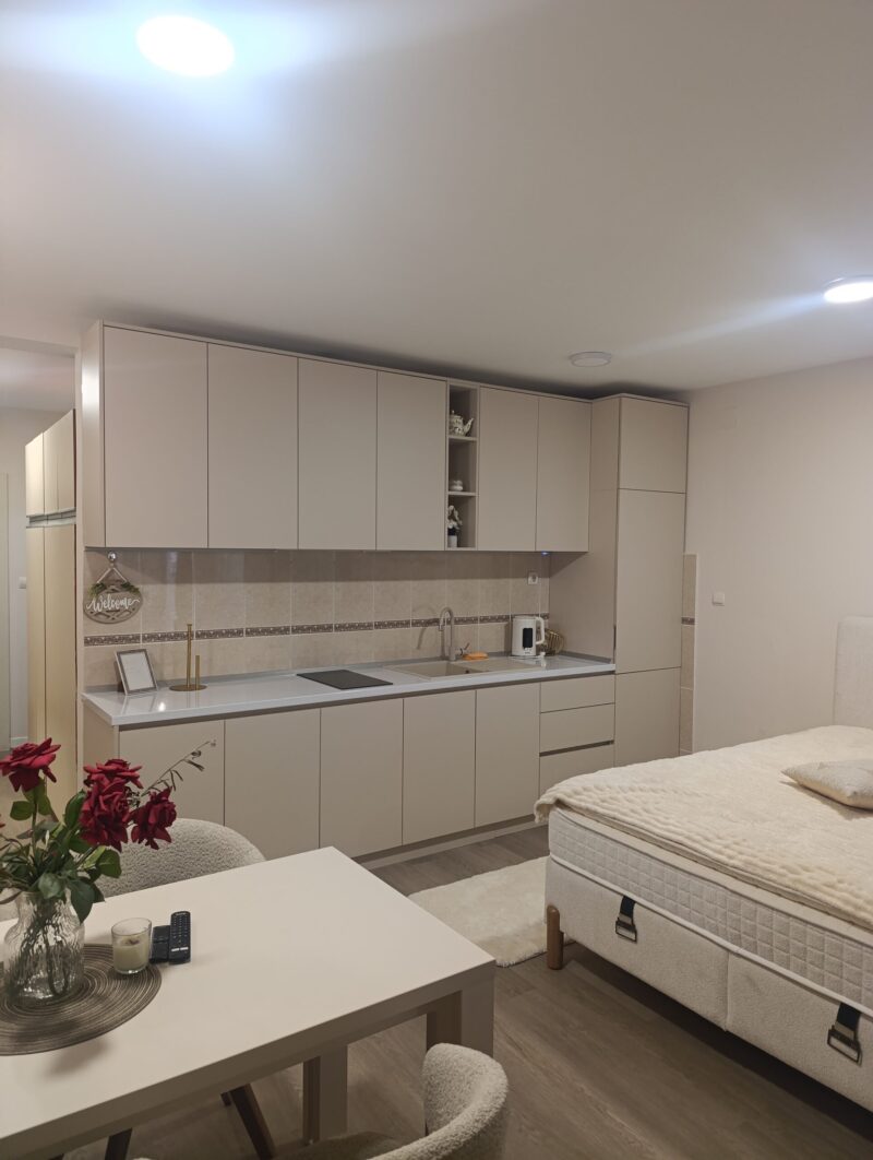 Izdaje se do Juna 2026 godine prostrana garsonjera u centru grada.Površina stana iznosi 33м² i nalazi se na prizemlju stambene zgrade ,opremljena novim nameštajem.Cena 400€ + računi,uslovi plaćanja dogovor.